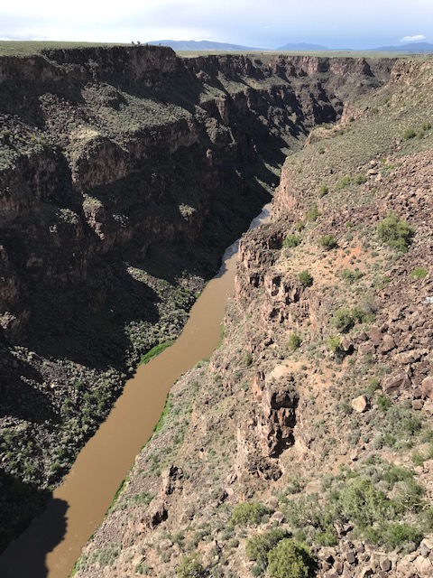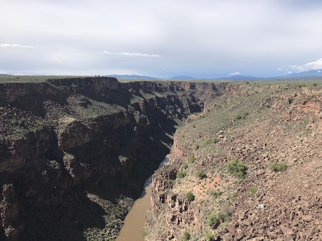 We made our way to the Rio Grande Gorge to view the bridge that spans the Gorge and the surrounding majestic views. The gorge was originally created as a result of volcanic action that separated the mountain range, leaving a 10 mile wide plain. Over the last several million years, the Rio Grande River has cut the gorge some 800 feet from the surface. The gorge runs approximately 50 miles from the Colorado border from northwest to southeast and then the Rio Grande continues its way south to become the border of Texas and Mexico. It is not nearly the magnitude of the Grand Canyon simply because it is much younger than the Canyon and the Colorado River cutting through it.