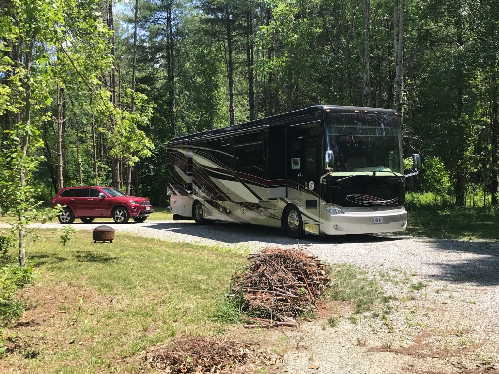 After a delightful afternoon and evening, we pulled out at 6:00 am June 28- for an 8:00 am appointment at Ken Wilson Ford Heavy Truck Department in West Asheville. They had replaced our Fuel Gauge last fall and it “needed calibration”. Three hours later, we were unloading the refrigerator and essentials into the toad and leaving Contessa – she needs new gauge & fuel sensor!