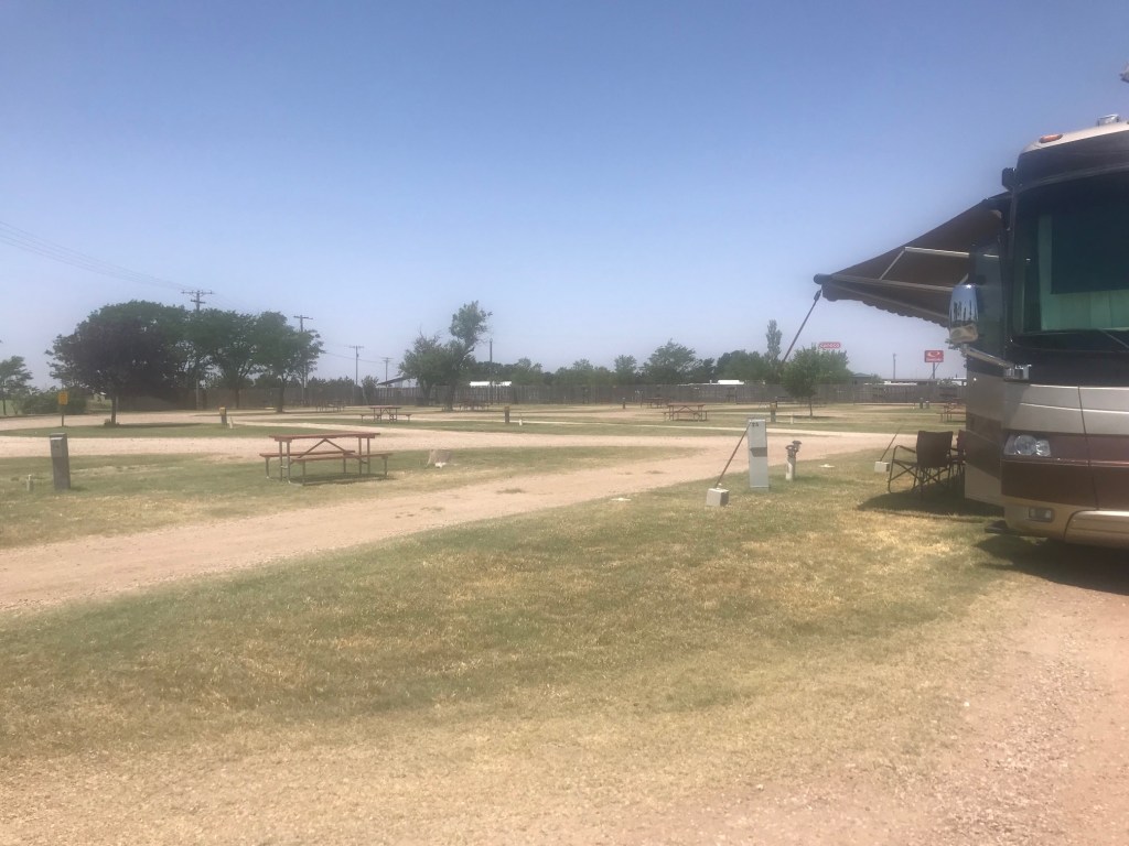 So, we are gently proceeding across Kansas – Nephew Jim and I met this morning midway between Dodge City & Wakeeney KS, where we found the convenient (if not attractive) KOA Journey campground.