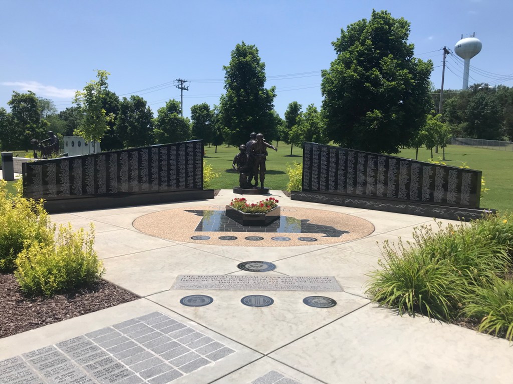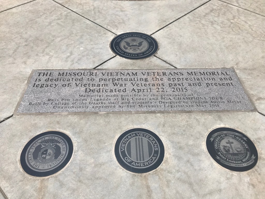 Missouri Vietnam Veterans Memorial The plaque explains that the division in the wall (similar to the Wall in Washington DC) is meant to represent the division that existing in the country over the war, but the warriors were right in the middle, doing what their country asked them to do.
