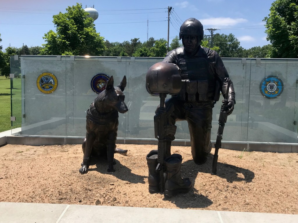 While there were many statues throughout the park, the one that spoke to all of us was Staff Sergeant Reckless of the 5th Marine Regiment – 1st Marine Division. SSgt Reckless served valiantly with the US Marine Corps in the Korean War. During the pivotal five-day Battle of Outpost-Vegas in late March 1953, she made 51 round-trips in a single day — most of them solo — from the Ammunition Supply Point to the firing sites. She carried 385 rounds of ammunition totaling more than 9,000 pounds, and walked over 35 miles, through open rice paddles and up steep mountains, as enemy fire exploded at the rate of 500 rounds per minute.