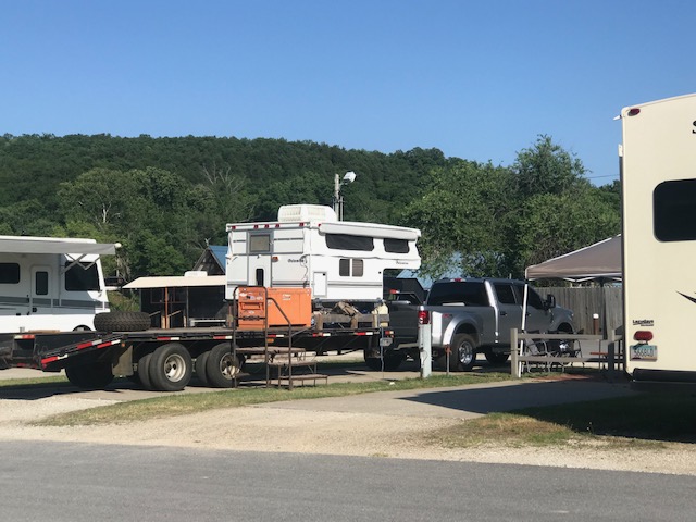 You see all types of “camping” styles – but the one of the right was very unique! A permanent installation of a unit that is supposed to slide into a pick-up truck bed, on a flatbed. They would then drive their off-road Jeep up the ramp on to back of the flatbed and pull it all with the large pick-up!