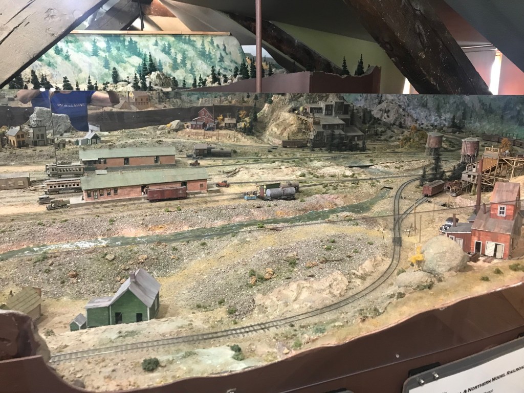 The Amtrak station remains a key transportation mode for visitors to Glacier National Park 35 miles away, but also to the ski slopes that are a major economic component of Whitefish. There are two trains a day – one from the east and one from the west. While the depot still functions for Amtrak, a large area on the first floor is now a very well-done museum of the railroad and the town. The docent that day was so nice – a native of Whitefish, she and her high school sweetheart went away to college and then they came back to teach at the local school for 34 years!