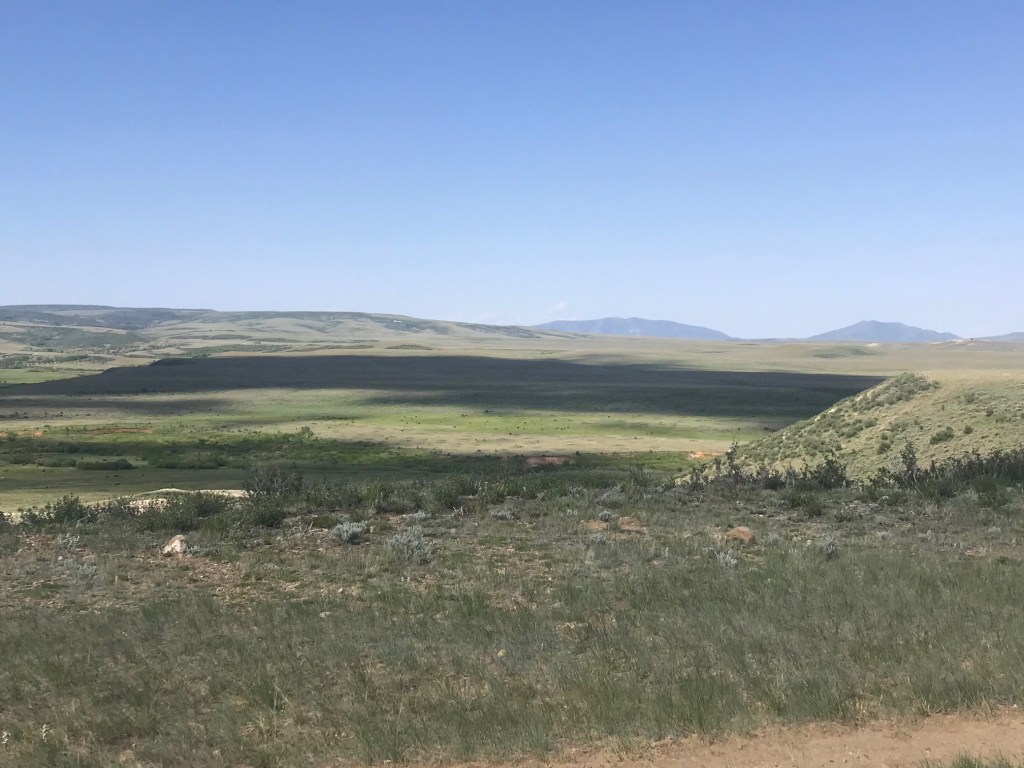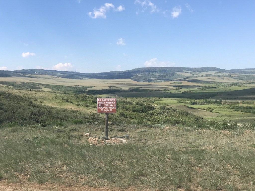 The first 175 miles were peaceful and easy with wide lanes, minimal traffic and absent of road construction/repair. The reality is that the roadwork can only be done during the same season that all the visitors want to be here, but Highway 191 was devoid of any of that. It was a delightful ride with amazing views of the mountains of the Bridger Teton National Forest. We smiled as we thought of our good friends, Dixon & Anne Bridger! The valley floor was full of sagebrush, interesting wildlife and ranches that spanned thousands of acres.